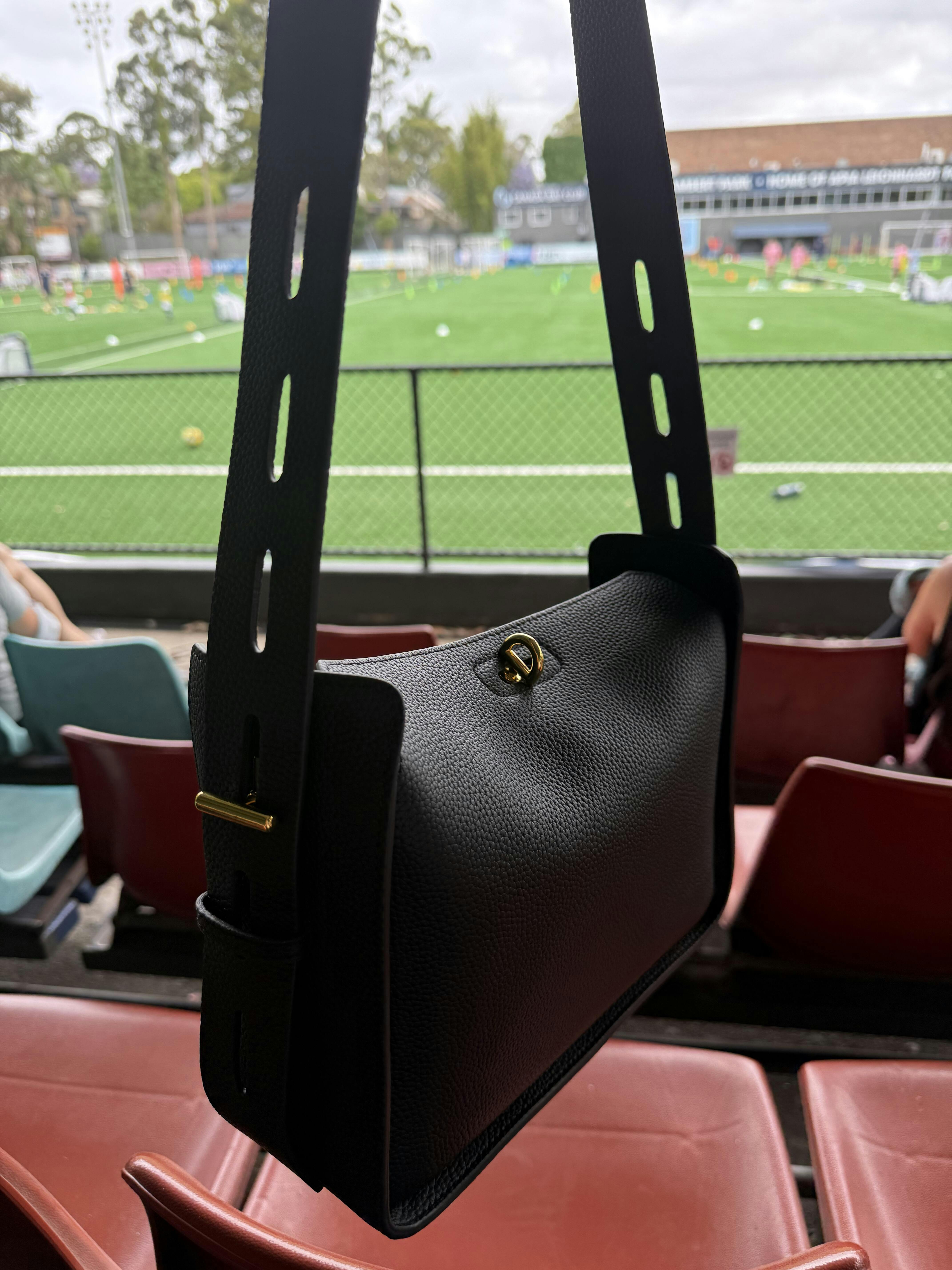 Crafted from genuine top grain pebbled leather with gleaming gold hardware, this shoulder bag is what happens when premium meets practical. Its adjustable strap keeps things comfortable, and comes with a zippered pouch to keep your things secure. Its just-right-size will make it your everyday fave - whether you’re headed to the office, brunch, or a date night. Slung low or hoisted high, this is the bag that gets you. It’s classic, elevated, and quietly showing off (just a little).